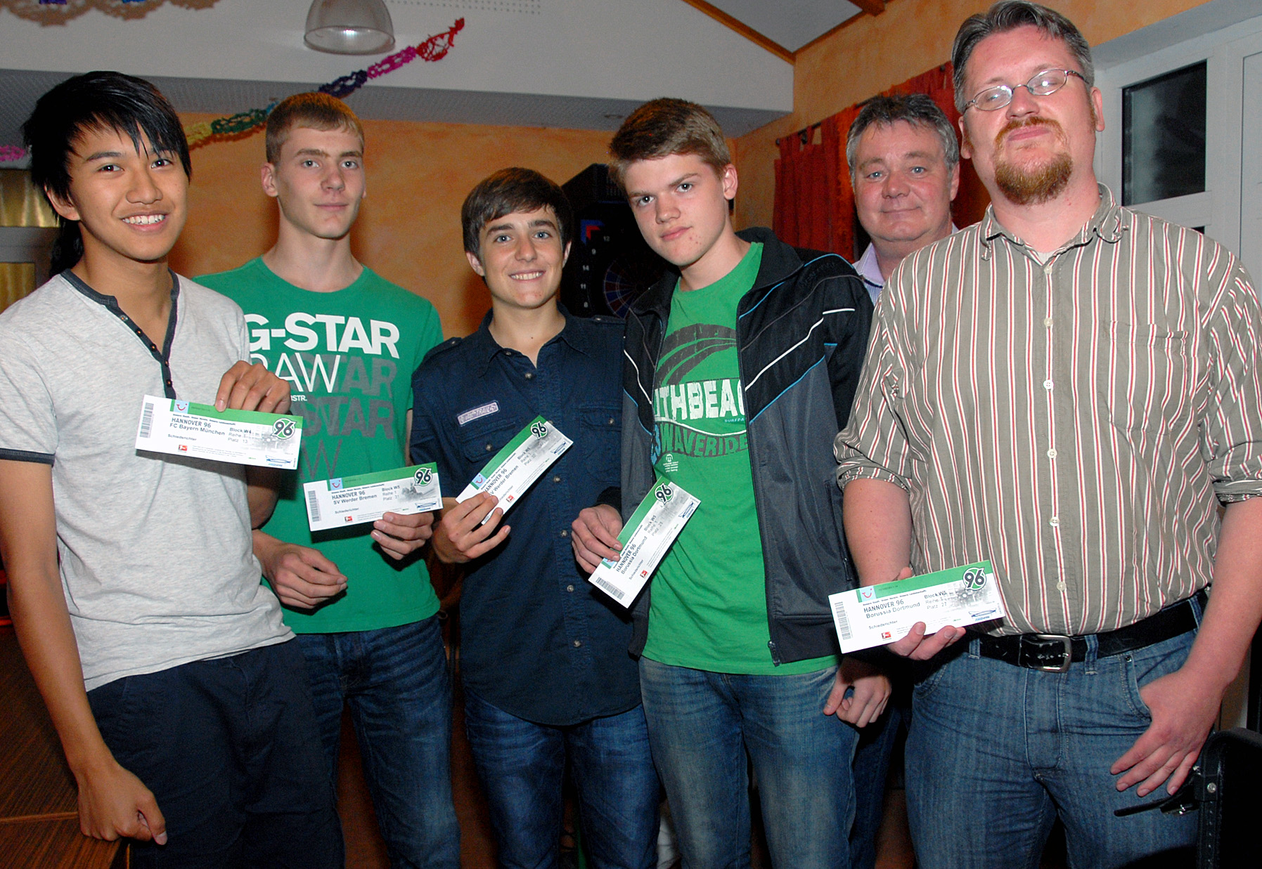 5 Teilnehmer hatten die Fragebögen ohne Fehler abgegeben. Rüdiger überraschte sie mit Eintrittskarten zu Heimspielen beim Bundesligisten Hannover 96.